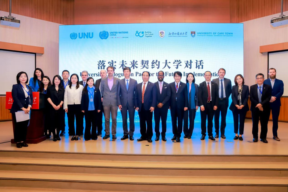 近日,我校應邀參加由聯合國大學、聯合國駐華系統、北京外國語大學與南非開普敦大學共同主辦的“落實未來契約大學對話”活動,并參與《大學實施〈未來契約〉行動計劃》啟動儀式。帥永副校長與人文社科學部趙宏瑞教授代表學校出席。作為慶祝聯合國成立八十周年系列活動之一,本次對話旨在搭建跨領域交流平臺,推動高校通過教學、科研與創新,在大學層面落實《未來契約》,促進學術探索與治理實踐深度融合,構建包容、韌性的治理新范式,為人類命運共同體建設貢獻學術智慧。來自聯合國系統、中國政府相關部門以及全球多所知名高校的代表齊聚一堂,圍繞“落實《未來契約》,完善全球治理”展開深入交流。在活動的主旨報告環節,帥永副校長以《以開放創新踐行未來契約:哈工大的全球合作與人類命運共同體構建》為題作了分享,系統介紹了學校在航天科技、水環境治理等領域的國際合作成果與經驗。本次會議的重要成果——《大學實施〈未來契約〉行動計劃》正式發布。該計劃聚焦課程融合、可持續校園、數字能力建設、科研創新、青年參與與國際合作六大優先領域,提出了一系列具體舉措與實施路徑,為全球高校落實《未來契約》提供了清晰的路線圖與行動指南。我校是該行動計劃的重要起草